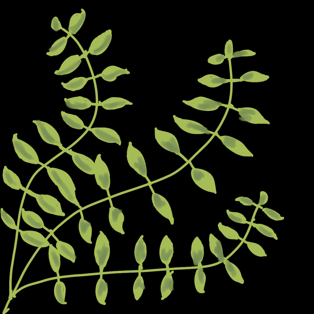 First on my list of upgrades: the concept art for leaves that would later be modeled in Blender for the future drafts. My initial drawings were quickly slapped down concepts that focused on silhouettes and what shapes our main plant leaves could be. But now was a great time to revisit these building blocks and expand on the first draft in a 2D format.